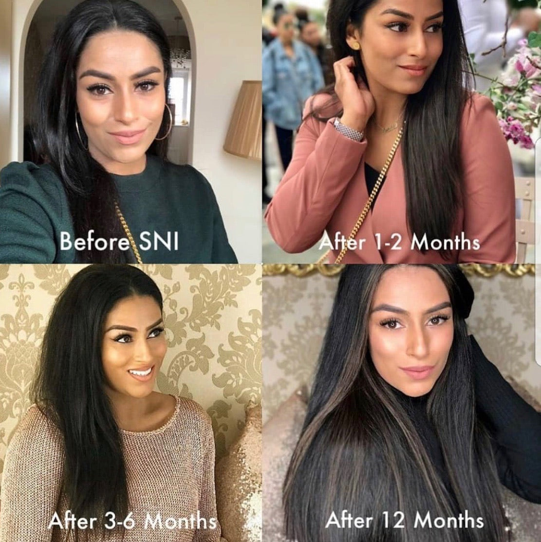 Lightweight, ultra-penetrative SNI Natural Hair Growth Oil works wonders on your hair, reaching three layers deep into the hair shaft, making it super absorbent and healing.